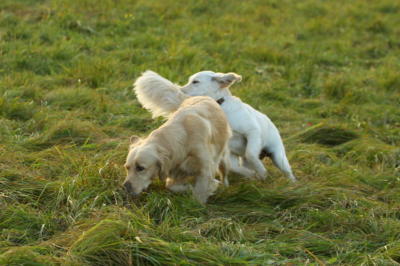 Ve čtvrtek jsem se domluvila s Janou K. a vyrazila jsem za nimi do Hradce na procházku. Chvilku jsem bloudila, ale nakonec jsem šťastně našla ten správný domeček. Kousek po chodníku a hned jsme byli na pěkné a rozlehlé louce. Měla jsem sebou pouze Larušku, protože Bocinka se stále léčí s ocáskem. A tady je několik momentek... Z Dorky roste krásná goldení slečna.